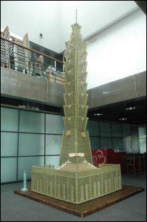 以竹子创作高达6米、底座宽约4米的台北101大楼模型