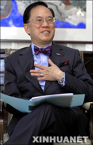 在曾经的港督府、如今的特区政府礼宾府,香港特别行政区行政长官曾荫权日前接受了新华社记者的采访。他系着招牌式的红花纹领结,用略带广东口音的普通话告诉记者,香港回归这10年的经历,是一个不平凡的过程。“我总的感觉,香港比1997年前更坚固,更成熟,更了解自己将来的道路。” 这是香港特别行政区行政长官曾荫权在接受访问(5月29日摄)。新华社记者 公磊 摄