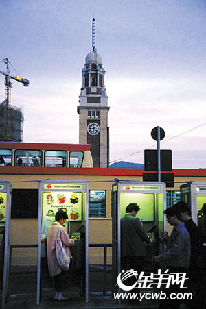 1980年,香港尖沙咀天星码头的电话亭和钟楼 王苗摄