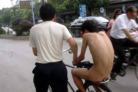 26日,一名推着自行车的男子带着一名脱光衣服的男孩行走在苏州人民路上。据这位推车的男子讲,小孩是他的儿子,经常在外面“闯祸”,读书又不认真,当日将小孩脱光衣服在街头曝光。许多行人目睹后,都为这名家长的行为而气愤。真正的“一丝不挂”,这位稚嫩的孩子被自已的父亲挟持着赤条条地去游街,相信所有的目击者以及从网上看到这则新闻的“目击者”心中都不免有些“那个”!