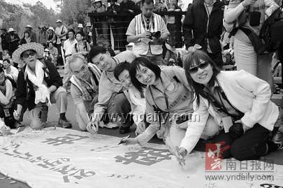 志愿者在洁白的哈达上签名留念 姚文晖/摄