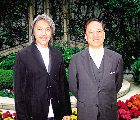 周星驰:应该不会。因为他是我的偶像,我非常尊敬他,非常崇拜他,所以不能搞笑。