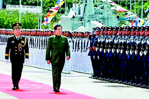 胡锦涛主席检阅香港昂船洲海军基地官兵。