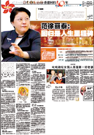 在筹划香港回归10周年纪念采访时,我们把焦点对准一系列举足轻重的人物——香港特首曾荫权、彭定康、前任香港特首董建华、红色资本家曾宪梓、武侠小说泰斗金庸……他们是香港天幕中永远闪耀的星辰。幸运的是,我们一一达成了心愿,让这些光芒四射的脸孔登上《香港回归10年——名人专访特别报道》专版。