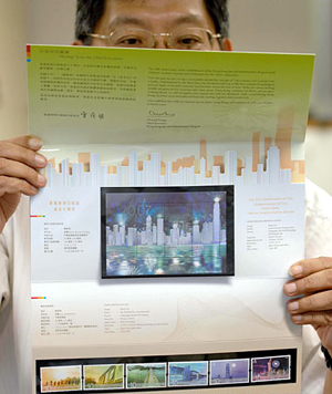 9:00《香港回归祖国十周年》纪念邮票在香港发售
