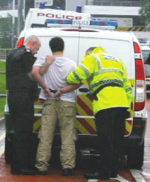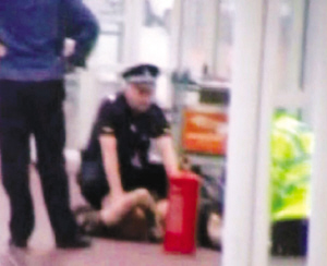 这时,车内跳出一名30岁左右的男子,一边攻击警卫,一边喊车里有炸弹,马上就要爆炸。惊慌失色的乘客顿时乱成一团,纷纷夺路而逃。闻讯赶来的警察将这名男子扑倒在地。