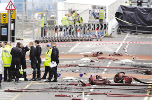 袭击发生后,警方在格拉斯哥机场进行调查。
