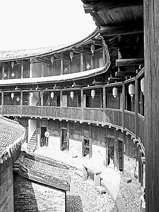 土楼内部格局被称为“四菜一汤”的南靖县田螺坑土楼群。(资料照片)