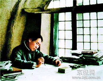 图为这是1938年,毛泽东在延安窑洞撰写《论持久战》。