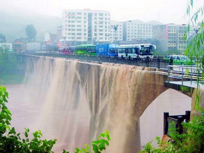 特大暴雨突袭四川 巴中区大桥成"瀑布"