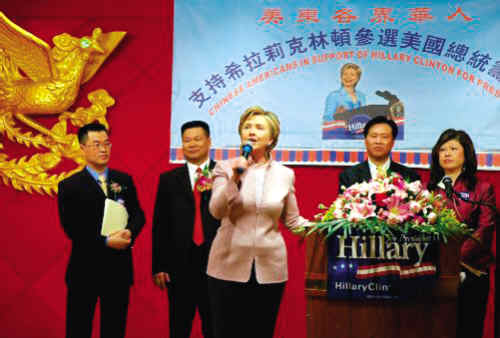 新快报综合报道美国民主党总统候选人希拉里南加州竞选总部4日在韩国城正式开张,加州税务委员会副主席赵美心出任亚太裔共同主席,代表南加州800万选民为希拉里背书,誓言首先拿下2008年2月5日加州初选,其次赢得11月全国大选,让希拉里成为下届总统。五百多位支持者和义工到会,现场气氛火热。