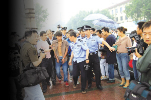 7月5日下午4时许,公安民警将“6·26”特大抢劫杀害见义勇为英雄戴俊案的3名犯罪嫌疑人带到案发现场指认。上千群众过来围观。由于围观群众过多,从西南城脚到西门之间的交通一度陷于瘫痪,交管部门不得不派出交警到场维护秩序。