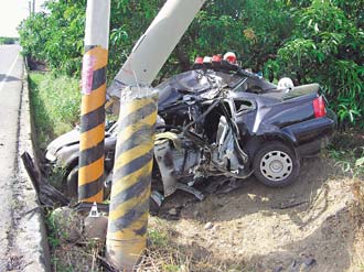台军宪兵因车祸二死二伤,图中为车祸现场。(台湾《联合报》图片)