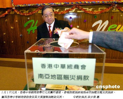 资料图为香港中华总商会副会长黄光汉慷慨捐赠助南亚海啸灾民。中新社发 洪少葵 摄