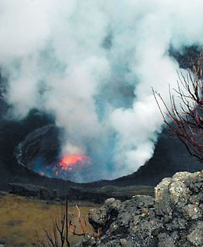 2002年,尼拉贡戈火山爆发后,火红的岩浆流过了附近的戈玛市中心,造成了100多人死亡,并摧毁了戈玛市5分之一的居民区。在此之前,就已经有过一名游客也失足掉下过这个火山口。