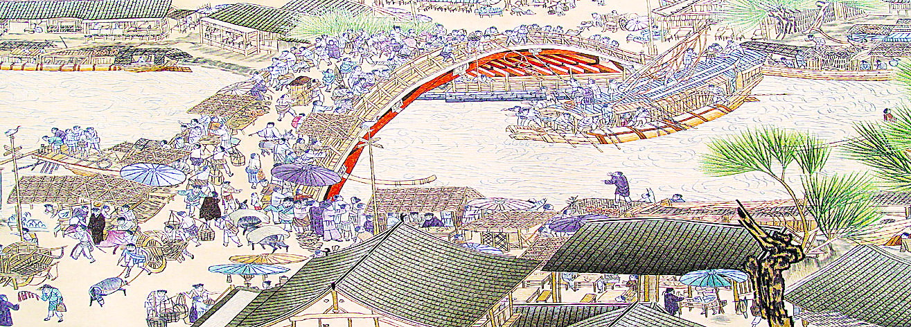 ▲汴绣清明上河图虹桥资料画