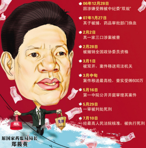 2006年12月,因涉嫌受贿,郑筱萸及其妻儿被正式立案调查……