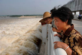 11日16时49分,安徽颍上县邱家湖蓄洪区坝堤成功挖开,第一个进洪口开始进洪。比安徽省防指要求的下午5时开始蓄洪的命令提前一分钟。顺着宽约10米、深3米的进洪口,淮河的漫漫黄浊洪水好像忽然间变成了听话的小河,乖乖地流进了邱家湖蓄洪区。