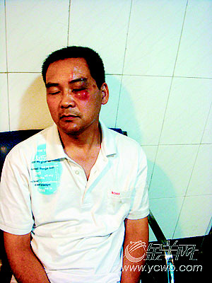 图:黄先生脸部被城管打伤