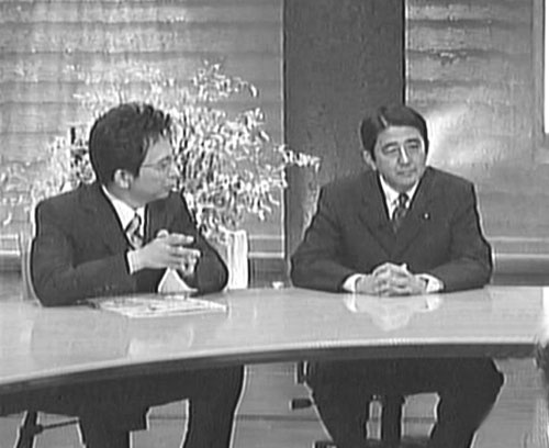 2007年7月10日,安倍(右)接受朝日电视台采访