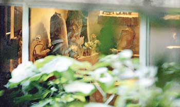 从窗口望入,可见屋内摆有假山。(图片来源:香港太阳报)