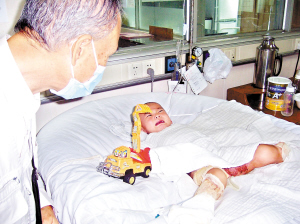●刘天周,2岁3个月,男,热液烫伤40%,家住广东省新兴县天堂镇龙坪锦芳塘村。
