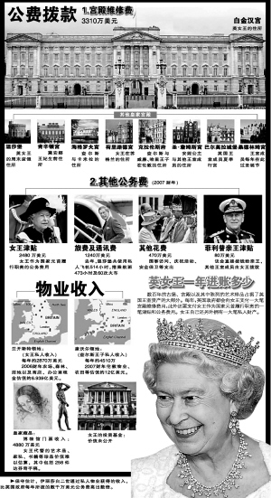 数百年来,英国王室成员的财政状况一直被视为讳莫如深的国家机密。然而近年来情况逐渐发生变化。为平息民众的疑问,就连英女王也不得不越来越多地公布自己的财务状况,仅英国政府每年拨款已高达7580万美元(约合人民币5.7亿元),而女王凭借私人领地、物业的收入更是这个数目的N倍。