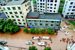 昨晚8时许,现场传来令人担心的消息,陈家桥镇二开发区的4栋危房被洪水围困,情况十分危险,楼里住有千余名居民,4艘冲锋舟冲入洪水实施救援。晚9时,又有4艘冲锋舟运到,开进洪区进行救援。