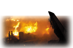 客机失事后引发多处大火。当地电视画面显示,出事地点光线极差,只有被撞仓库大楼在夜色中冒着橙色火焰,客机前身已经全部撞入建筑中,只有尾部暴露在建筑外。