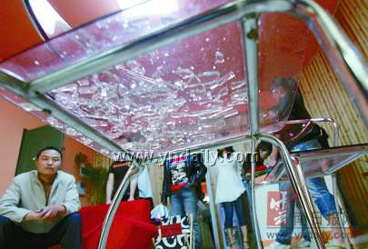 玻璃飞溅,划伤两店员本报记者王宇衡 摄