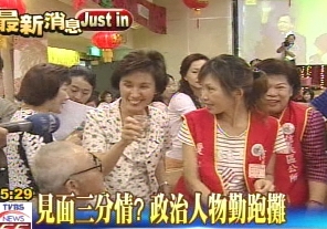 陈水扁前脚走,马英九的大姊马以南紧接上台,不只拉票还现场募款,姊妹淘在台下挺到底。