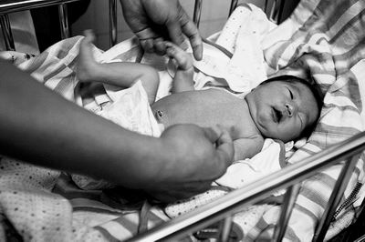 医护人员接过了胡二桃怀中的孩子,并搀扶着胡二桃前往妇产科病房,对孩子进行身体检查,许多人跟了过去。