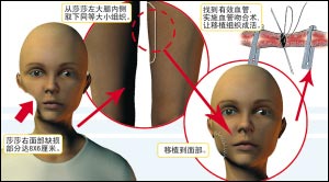 少女右脸萎缩 大腿割肉补平半张残脸(图)