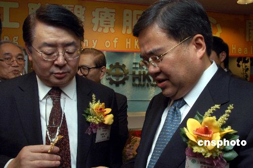 资料图片:香港医管局主席胡定旭(右)。中新社发 谭达明 摄