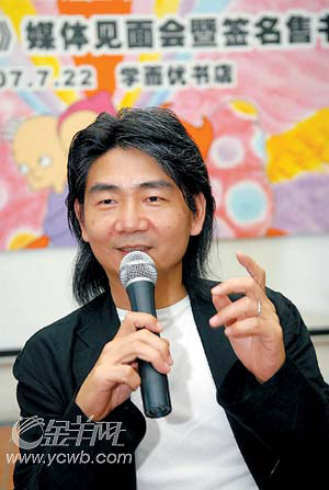 画了20年的漫画,名动天下,朱德庸这回亲手打破了自己的一个“禁区”,因为他一直因为“太讨厌小孩”而从不肯触及儿童题材。在前天的签售会上,很多读者都对此难掩好奇;又听主持人说这位一直宣称不爱互联网的漫画家居然最近也“开博”了,人们更倍感新鲜。