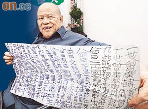 曾灶财写下的族谱“有纹有路”。(图片来源:香港太阳报)