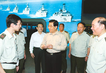 胡锦涛等领导同志强调,国防和军队现代化建设是我国社会主义现代化建设的重要组成部分。我们一定要坚持以毛泽东思想、邓小平理论和“三个代表”重要思想为指导,深入贯彻落实科学发展观,全面推进军队革命化、现代化、正规化建设,不断取得国防和军队现代化建设的新成就,为国家发展和人民幸福提供可靠安全保障,为维护世界和平作出更大贡献。