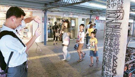 另外,昨日有不少市民前往尖沙咀天星码头,与写在石屎柱上的“曾字体”拍照留念。住在观塘的翟先生表示,小时候曾在居住的地方见过曾灶财大显身手,在墙壁上写书法。经常乘坐天星小轮的郑先生说,几乎每日都会经过尖沙咀天星码头,看到石柱上曾灶财的作品。