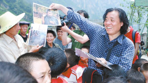 照片:林强给阿布洛哈村村民送来他为大家拍摄的照片。高效文摄