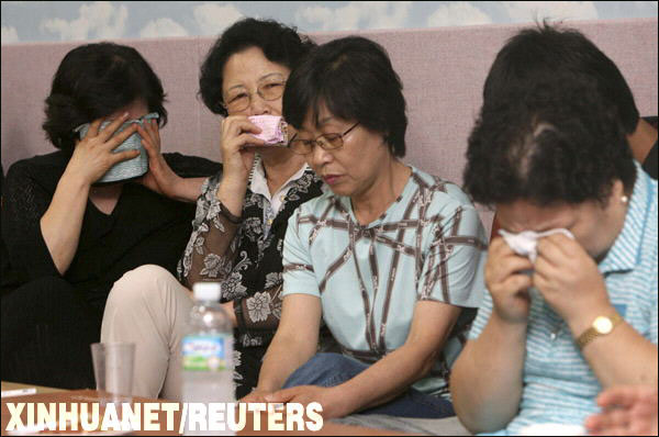 7月27日,在韩国首都首尔南部地区,部分韩国人质的家人通过电视了解有关在阿富汗被绑架的韩国人质的消息,期盼亲人平安获释。被绑韩国人质所在地阿富汗加兹尼省省长当日对新华社记者说,塔利班已同意再次延长处死人质的最后期限。 新华社/路透