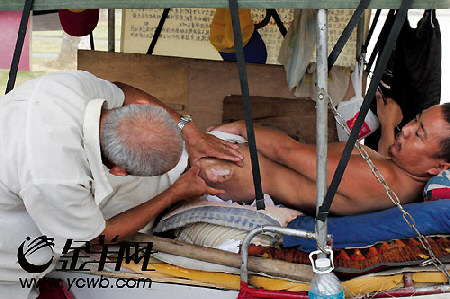 “效果还不错。”任老汉说,由于延误了治疗,才造成儿子瘫痪,下身至今仍失去知觉。