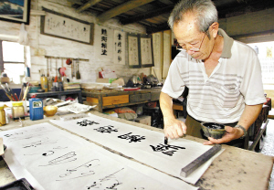 不用毛笔,仅用右手小指沾墨信手挥洒,一幅漂亮的书法作品便呈现。70岁的杏坛镇农民书法家梁伯创作“指书”已有40年。时值暑假,梁伯正免费教放假的学生们书法创作,希望为指书培养一些接班人。杏坛文化站有关负责人说,梁伯为顺德唯一会指书者,文化站将寻找和推荐人才向梁伯拜师,传承指书艺术。