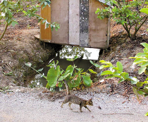 “我们首先在野外田间搭起猫舍,为了防止猫咪逃跑,我们将猫圈养在一定的活动区域,大约过一个多星期,猫咪就熟悉了生活的环境,放养到田间野外,每天都能自己回猫舍。”