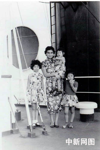 这是当年赵小兰的母亲带着三个女儿乘坐远洋货轮从中国台湾航行到美国在甲板上的留影。(图片由赵小兰提供)