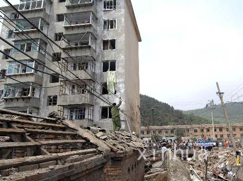 爆炸现场附近的一栋楼房的窗户多被震碎(7月5日拍摄)。7月4日20时50分,辽宁省本溪满族自治县田师付镇天赢歌厅发生爆炸,已造成25人死亡,33人受伤。目前,现场清理工作已经完毕。 新华社记者 李钢 摄