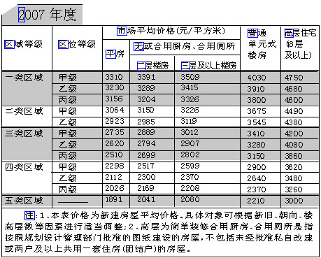 2006年度与2007年度石家庄市拆迁区域(位)住宅房屋市场价格比较