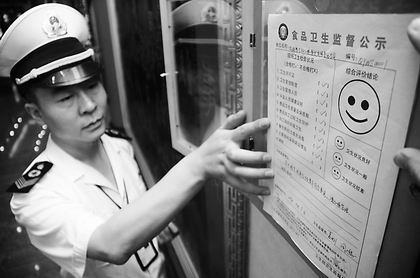 成都市青羊区昨在琴台路启动餐饮单位卫生监督情况公示制度,用“笑脸”“平脸”“苦脸”表示卫生状况