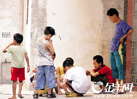 昨日下午4时许,记者在莞城兴塘社区的一棵大榕树下,见到数十名外来工子女在玩耍。有的正在打乒乓球,有的在玩卡牌……来自湖北的李军,就读附近的岭南学校六年级。他告诉记者,父母在工厂上班,只有中午和晚上回来,其他时间只有他在家。被采访的小朋友中,大部分都是父母白天上班,晚上在家。兴塘社区居住许多外来人口,附近还有个农贸市场,出入人口比较杂乱,存在比较大的安全隐患。没有上班的部分家长都在忙着打牌,根本顾及不到孩子。