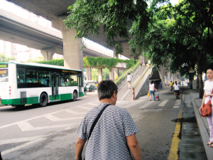 据了解,除了天桥,市内兴建的高架沿线其本身的桥墩部分落脚位置也给原本地面道路的行车安全造成影响。尤其是路口交叉的位置,情况尤其严重。因为往往这些地方都是车流汇合、转弯的节点。