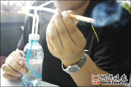 长春市民张先生告诉记者,现在长春市内个别超市里销售一种名为“热潮”的纯净水,这种纯净水一瓶的销售价格是10元钱,却只有350毫升,也就相当于普通瓶装矿泉水的一半。这种纯净水的水没有什么特别之处,而装水的瓶子却有很大的奥妙!普通市民根本没有人会花10元钱买这样一瓶纯净水,只有吸食毒品的人才会购买,因为这纯净水的瓶子设计独特,可以作为吸毒者的吸毒工具!